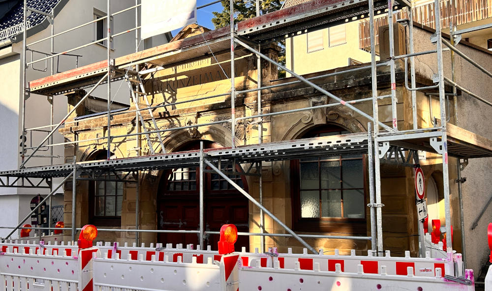 Hier findet man ein paar mehr Fotos der Weinkellerei Konzelmann ohne Gerüst.